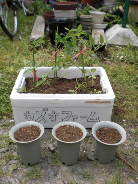 大将にもらった発砲スチロール(水はけがよくなるよう底に穴をあける)