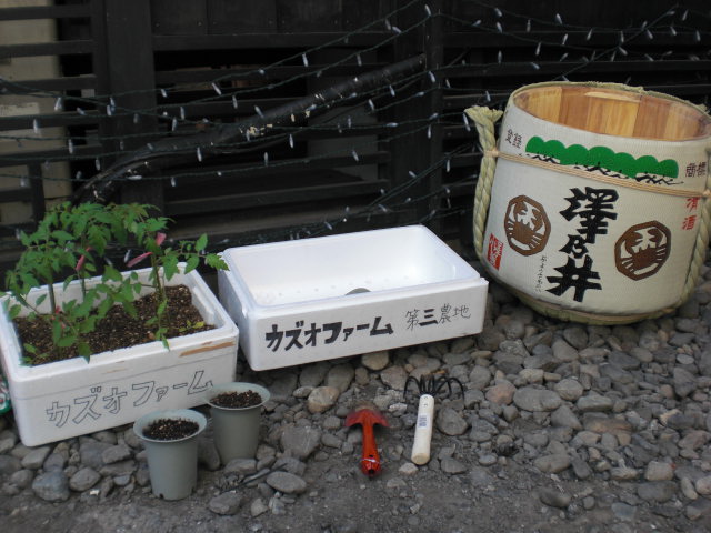 真ん中の発砲スチロールにみょうがを2株ほど・・・まだ発芽してません。。。