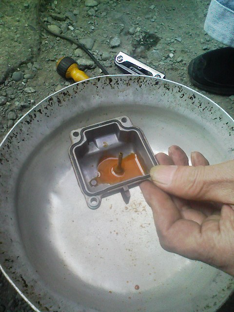 ほいで、先日からバイクと格闘しつつ、修理の日々です。油(脂??)にまみれ、右手にドライバー、左手にラジペンてな具合に……。バッテリーを充電し、キャブを掃除して…等々。。