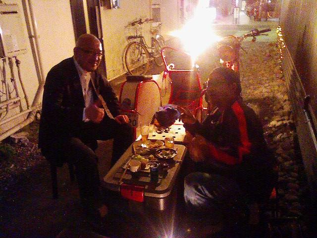 外でサイドカー修理をしていて一段落して飲み始めていたら、