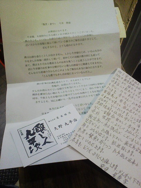 こんなお手紙をいただいたら、頑張って売ろう!飲もう!と思ってしまいます。